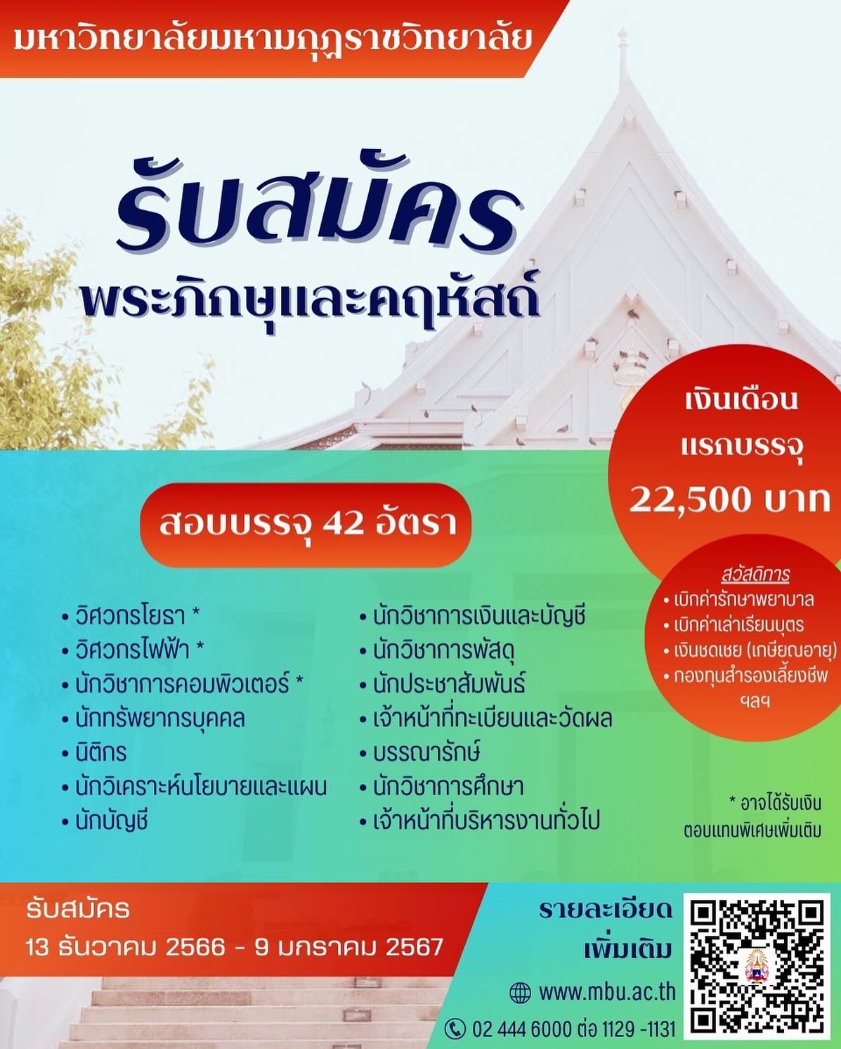 เป็นบุคลากรมหาวิทยาลัยมหามกุฎราชวิทยาลัย ประจำปีงบประมาณ พ.ศ. 2567 ในตำแหน่งประเภทวิชาชีพ จำนวน 42 อัตรา