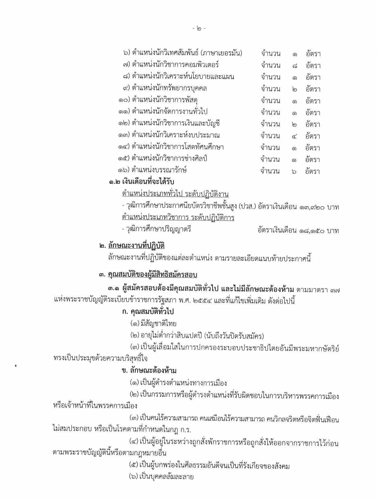 1.1 ตำแหน่งและจำนวนที่จะบรรจุและแต่งตั้ง จำนวนวน 26 ตำแหน่ง 137 อัตราตำแหน่งประเภททั่วไป ระดับปฏิบัติงาน