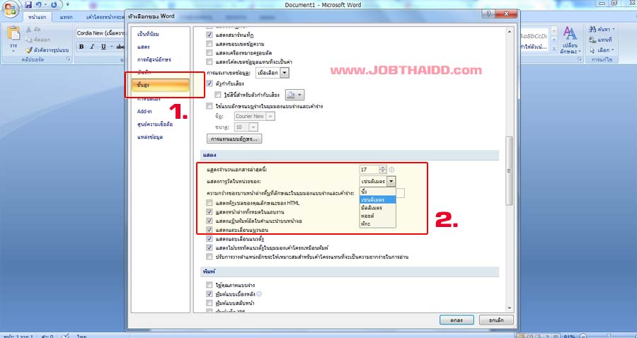 1.ทำการเปิดโปรแกรม Microsoft Word แล้วไปที่เมนู >> ตัวเลือกของ Word