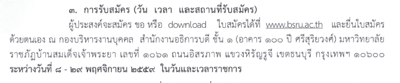 คุณสมบัติเฉพาะสำหรับตำแหน่ง : ตามประกาศมหาวิทยาลัยราชภัฏบ้านสมเด็จเจ้าพระยา