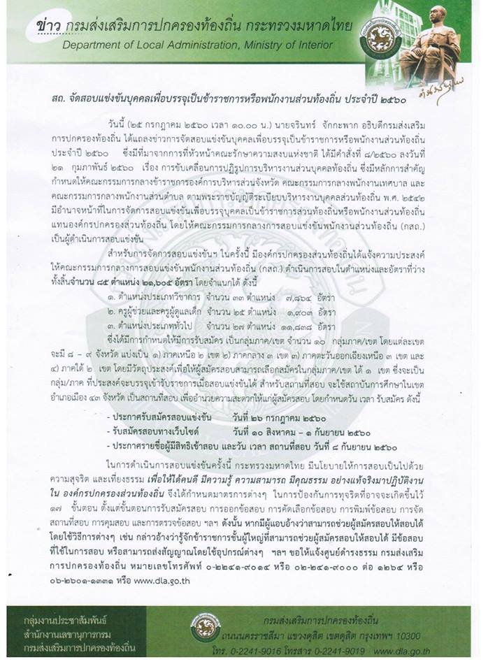 - ประกาศรับสมัครสอบแข่งขัน วันที่ 26 กรกฎาคม 2560
