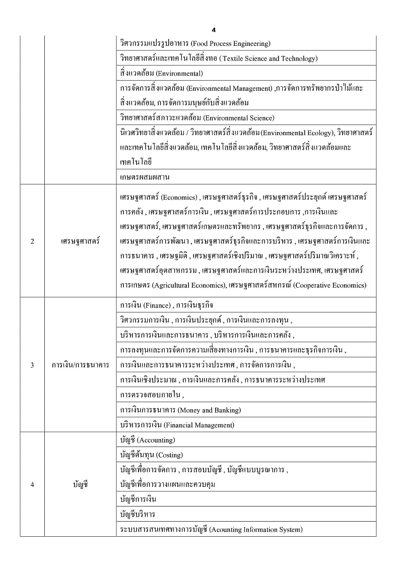 ที่ ก.พ. รับรอง และในใบรายงานผลการศึกษา (Transcript) หรือปริญญาบัตรระบุว่าเป็น สาขาวิชา/ วิชาเอก /โปรแกรมวิชา/แขนงวิชาตามที่ธนาคารกำหนด (ตามตารางสาขาวิชาด้านล่าง)