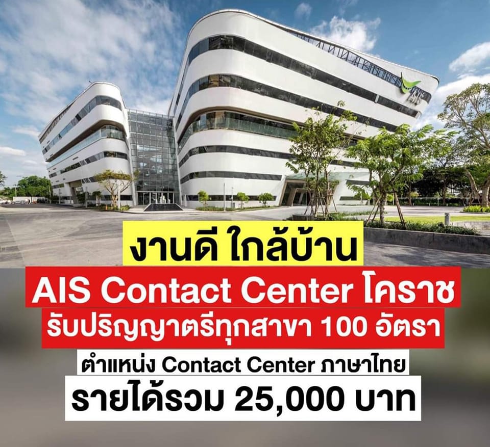 ตำแหน่ง : AIS Contact Center ภาษาไทย รายได้ 15,000 - 25,000 บาท