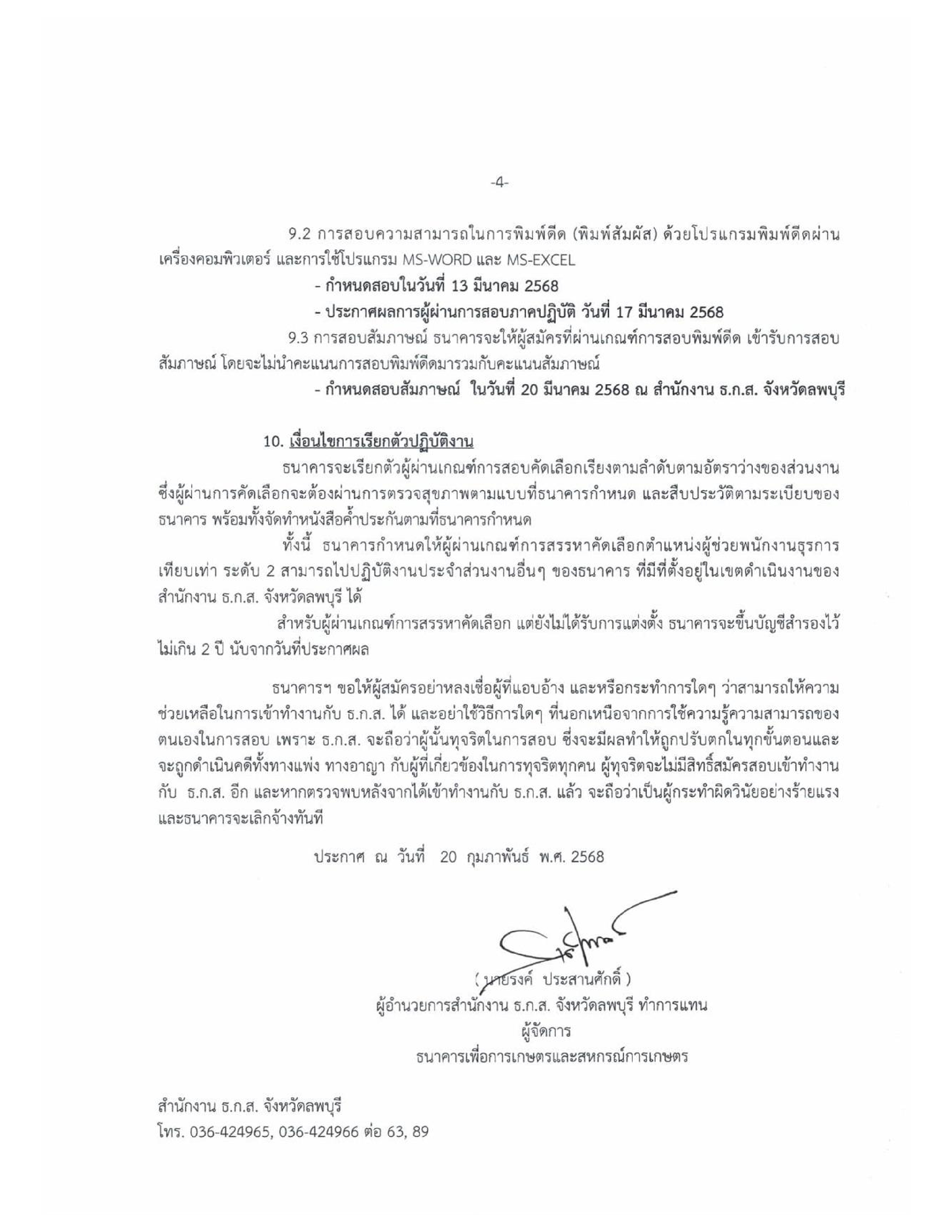 ระดับ 2 ประจำสาขา ในสังกัด สำนักงาน ธ.ก.ก.ส. จังหวัดลพบุรี จำนวน 2 อัตรา โดยมีรายละเอียด ดังนี้