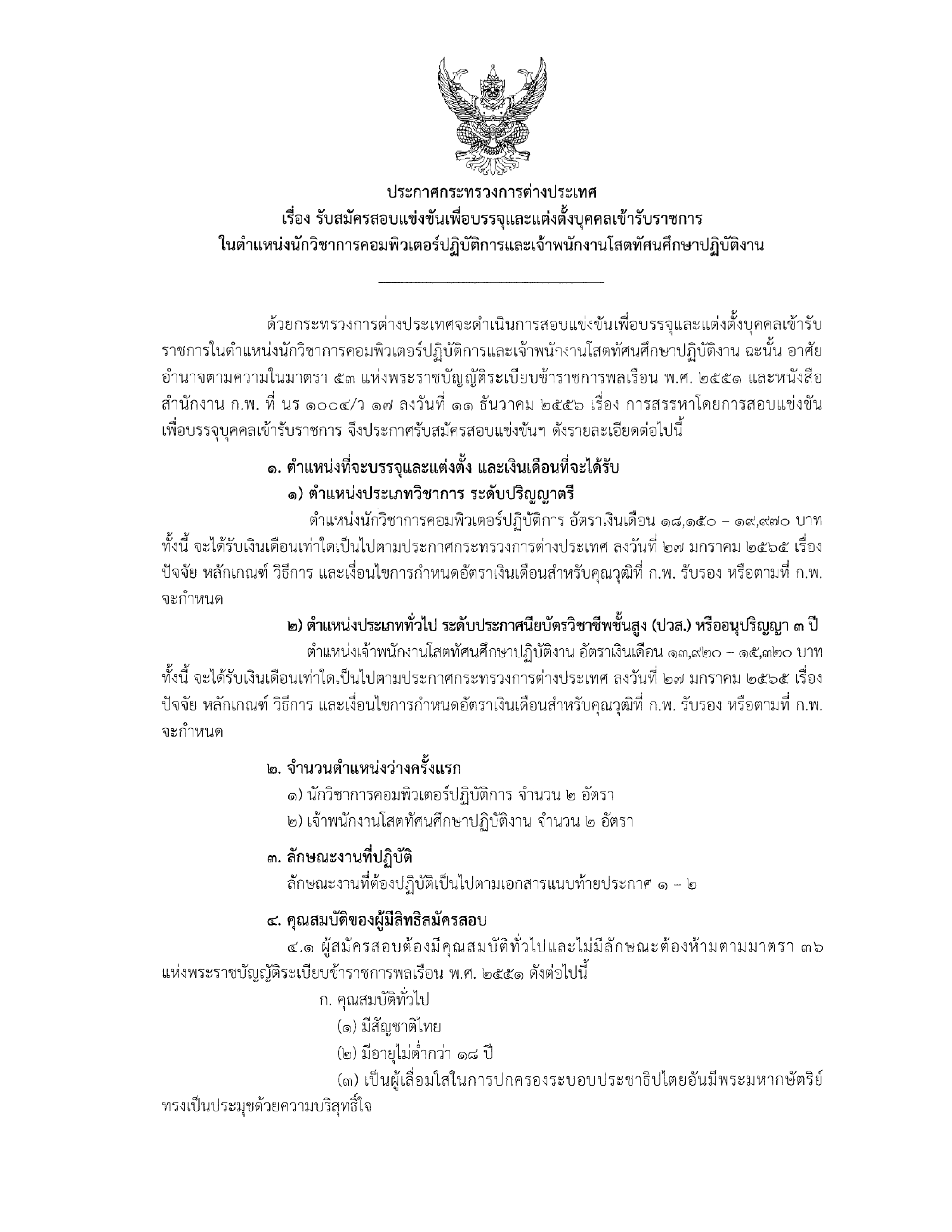 ประกาศกระทรวงการต่างประเทศเรื่อง รับสมัครสอบแข่งขันเพื่อบรรจุและแต่งตั้งบุคคลเข้ารับราชการ