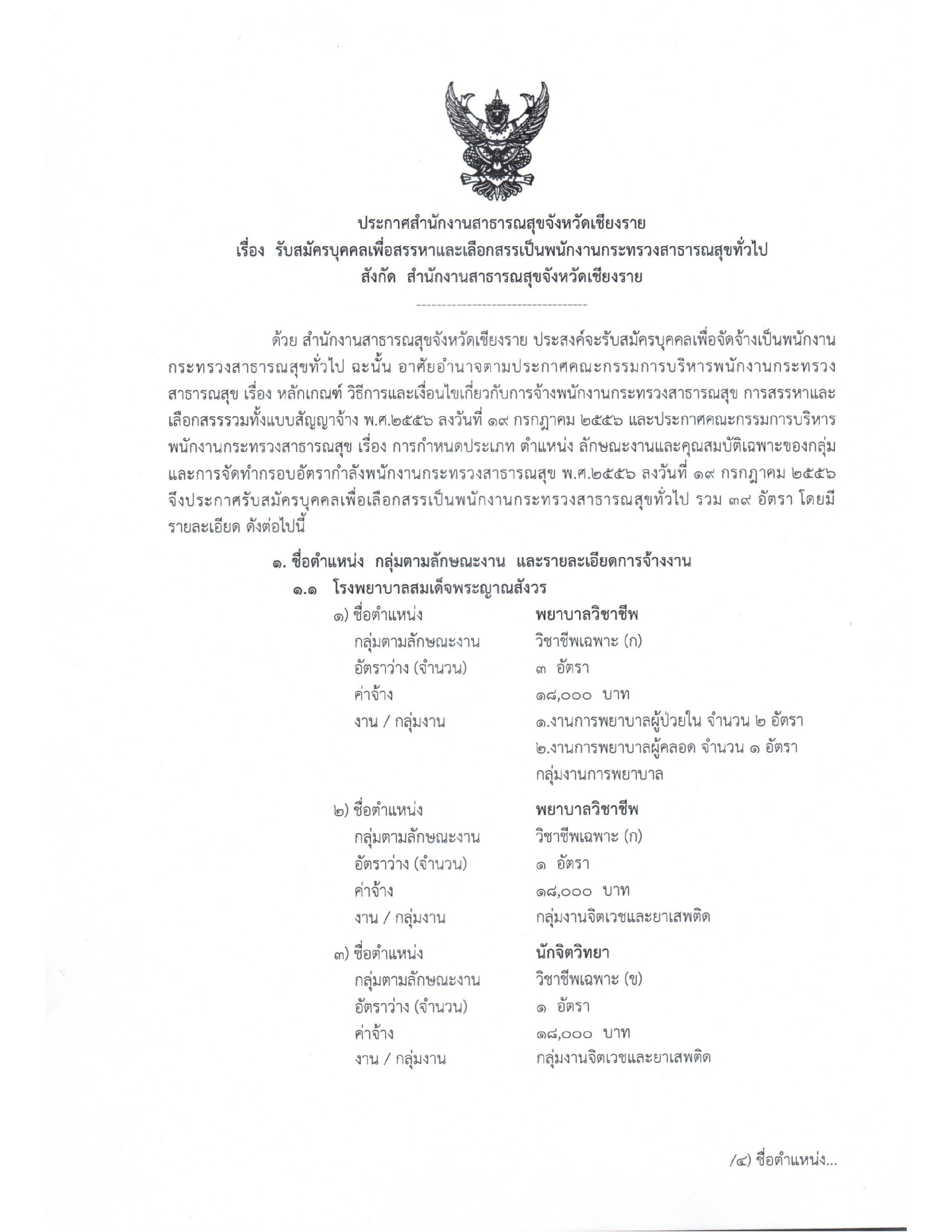 เรื่อง รับสมัครบุคคลเพื่อสรรหาและเลือกสรรเป็นหนักงานกระพรวงสาธารขทั่วไป สังกัด สำนักงานสาธารณสุขจังหวัดเชียงรายด้วย สำนักงานสาธารณสุขจังหวัดเชียงราย ประสงค์จะรับสมัครบุคคลเพื่อจัดจ้างเป็นพนักงานกระทรวงสาธารณสุขทั่วไป