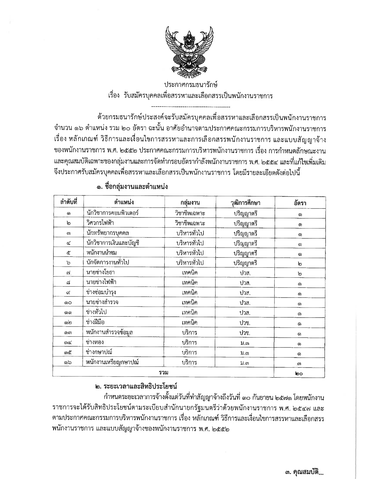 เรื่อง รับสมัครบุคคลเพื่อสรรหาและเลือกสรรเป็นพนักงานราชการด้วยกรมธนารักษ์ประสงค์จะรับสมัครบุคคลเพื่อสรรหาและเลือกสรรเป็นพนักงานราชการ จำนวน 16 ตำแหน่ง รวม 20 อัตรา