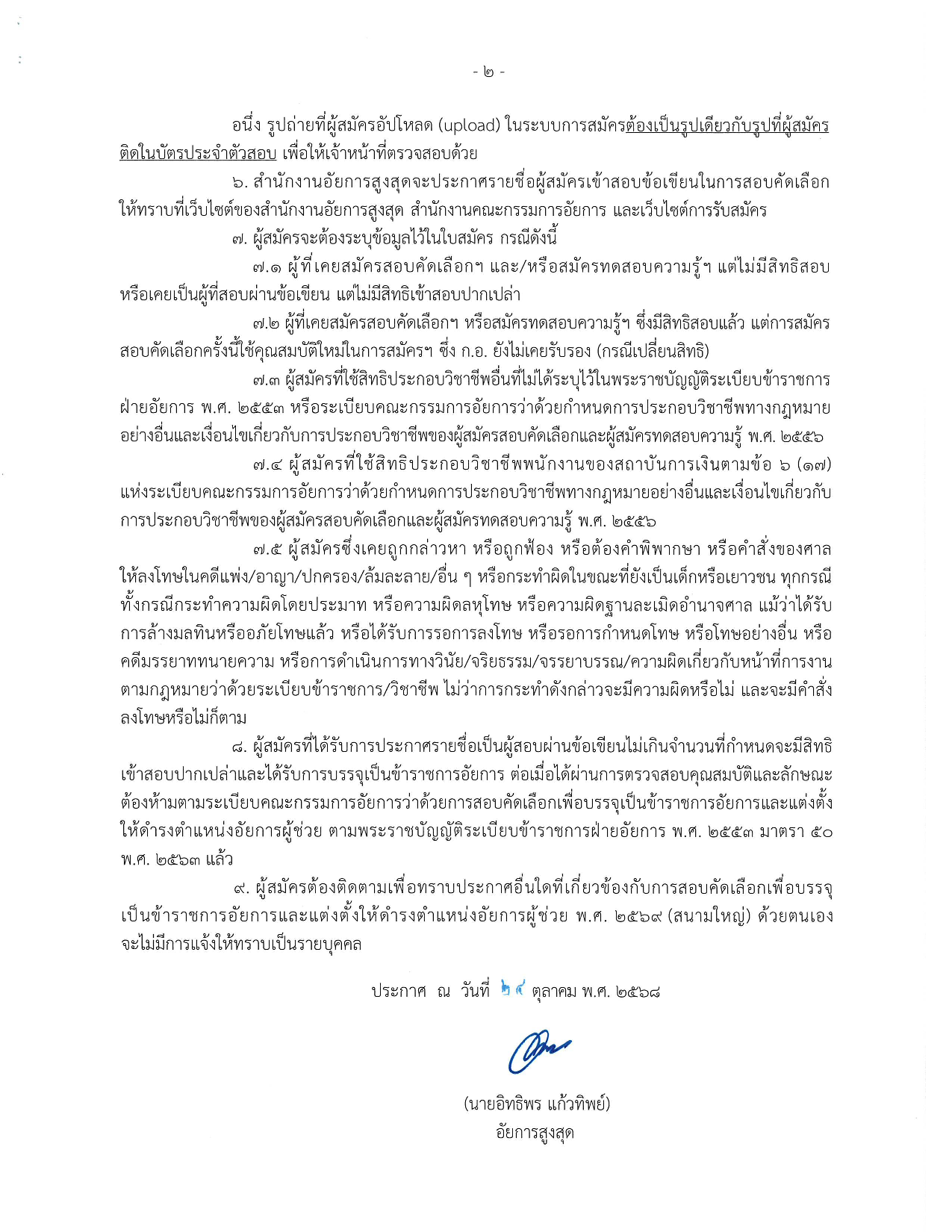 2. ผู้สมัครยื่นใบสมัครสอบด้วยตนเองทางอินเทอร์เน็ตได้ที่เว็บไซต์ของสำนักงานอัยการสูงสุด www.ago.go.th เว็บไซต์ของสำนักงานคณะกรรมการอัยการ www3.ago.go.th/cmiss หรือเว็บไซต์ https://ago-cmiss.thaijobjob.com โดยให้ลงทะเบียนสมัครได้ตั้งแต่วันพุธที่ 5 พฤศจิกายน 2568 เวลา 08.30 น. ถึงวันพฤหัสบดีที่ 4 ธันวาคม 2568 เวลา 12.00 น. (ไม่เว้นวันหยุดราชการ)