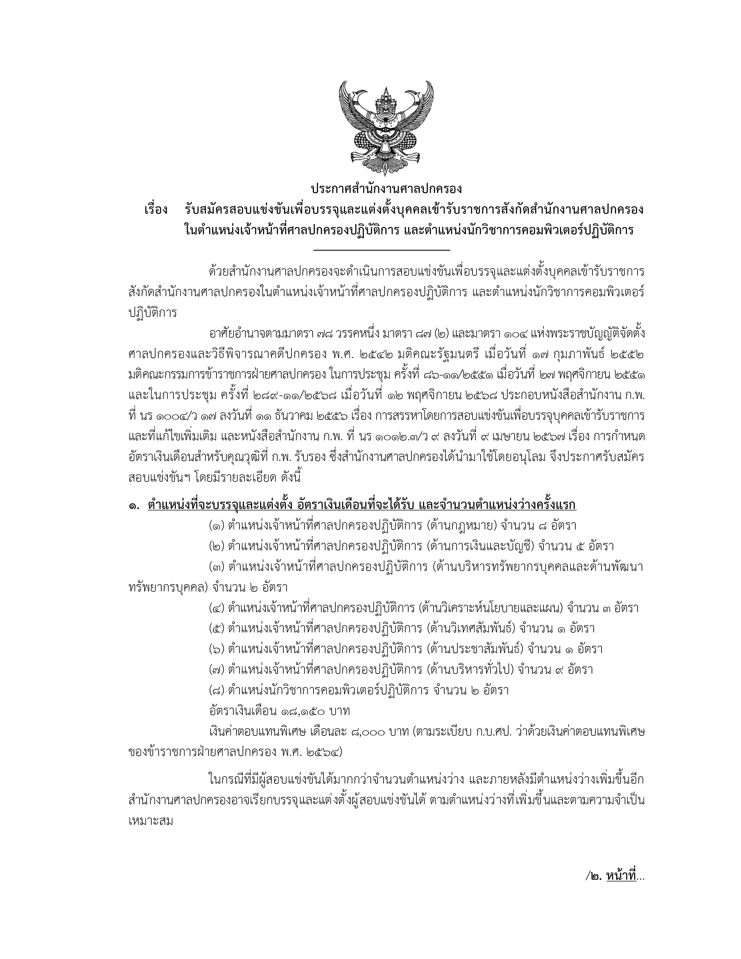 เรื่อง รับสมัครสอบแข่งขันเพื่อบรรจุและแต่งตั้งบุคคลเข้ารับราชการสังกัดสำนักงานศาลปกครอง1.ตำแหน่งที่จะบรรจุและแต่งตั้ง อัตราเงินเดือนที่จะได้รับ และจำนวนตำแหน่งว่างครั้งแรก