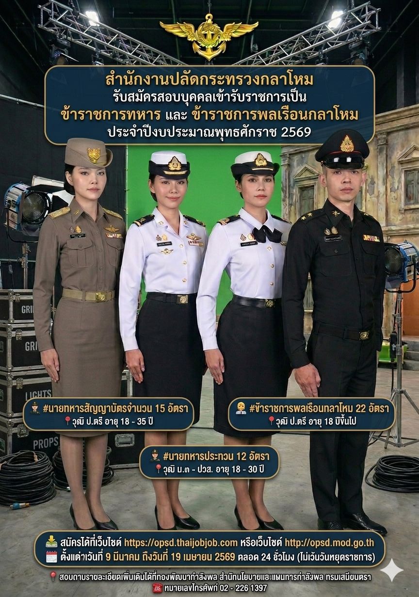 - ใครกำลังมองหา “สอบทหาร 2569” หรือ “สมัครสอบกลาโหม 2569” ห้ามพลาด! เตรียมเอกสารให้พร้อมและสมัครภายในระยะเวลาที่กำหนด