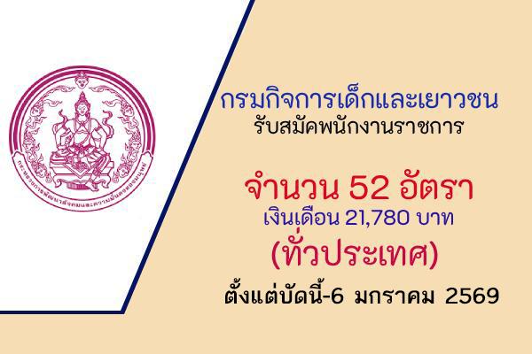 กรมกิจการเด็กและเยาวชน รับสมัครพนักงานราชการ 52 อัตรา
